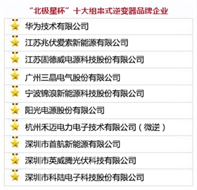 榮膺“北極星杯”十大組串式逆變器品牌的企業(yè)有: